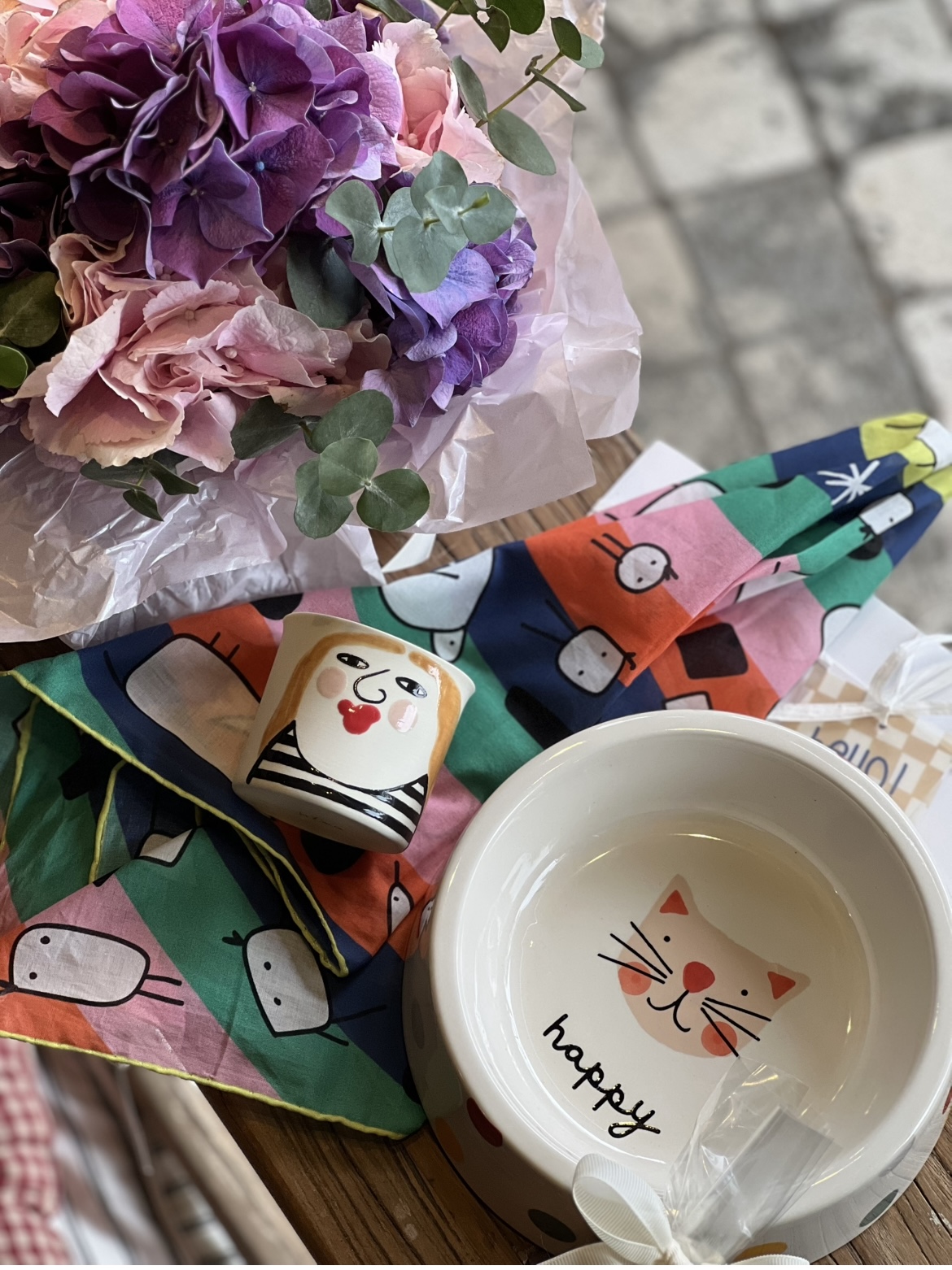 Sepet içerisinde ortancalar, kedi mama kabı, kırk3 tasarım bandana ve hüma mete fincan bulunmaktadır, satış gelirinin %10’u patili dostlarımız için bağışlanacaktır. Bandana ve fincan alternatifleri için iletişime geçebilirsiniz.
