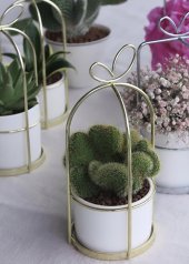 Özel gold metal, beyaz seramik saksıda kaktüs